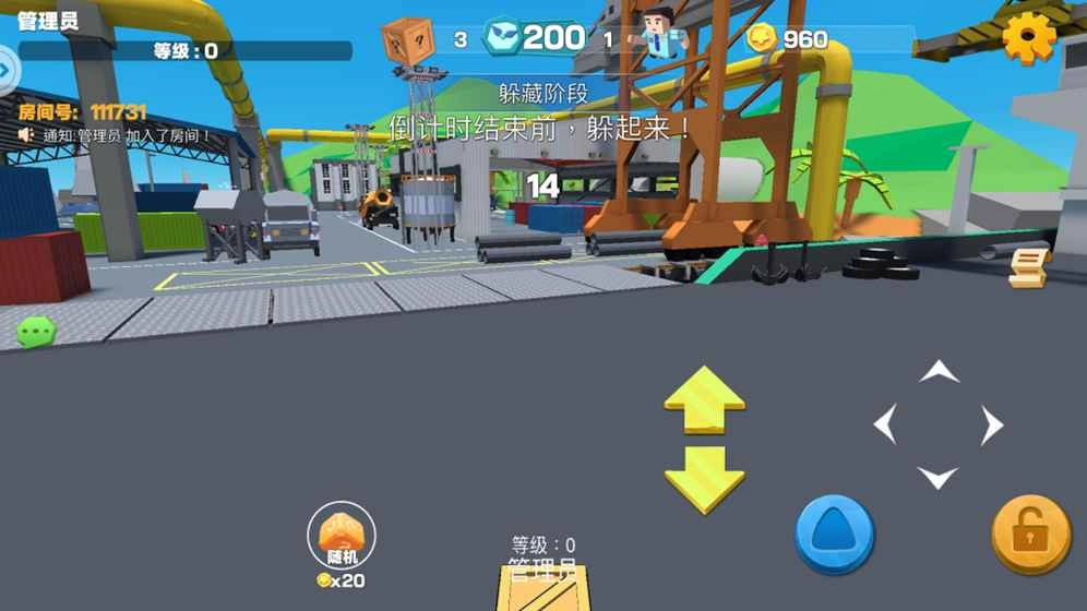 开心躲猫猫游戏开始时,系统会随机把你变成一件物品。你可以通过屏幕左下方的按键控制动作,还能在屏幕上滑动来调整观察角度和物件的朝向。