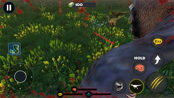 游戏左下角的摇杆可以直接操控左恐龙移动,操作起来十分轻松。