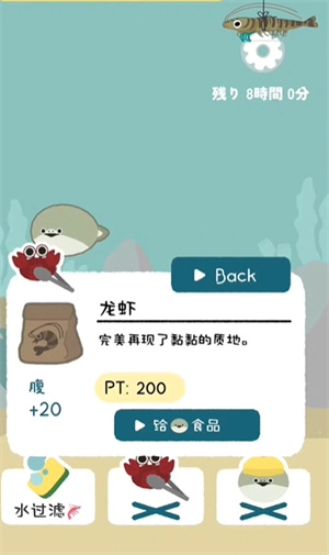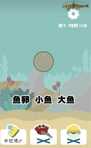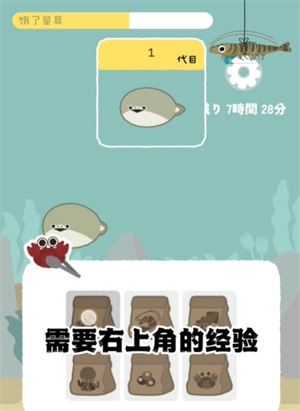 新人上线后,按照提示完成喂食、清洁脏水等操作,小鱼就能快速成长。不过海洋里还有其他鱼类,得小心别被吃掉,所以需要准备一些防御装备。