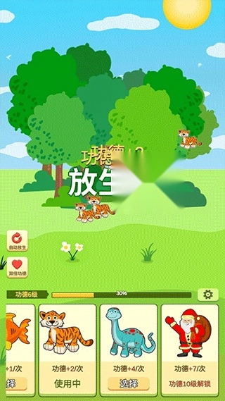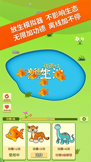 点击一下就能放生动物,完成放生后会积累对应的功德,这个玩法操作简单、容易理解。