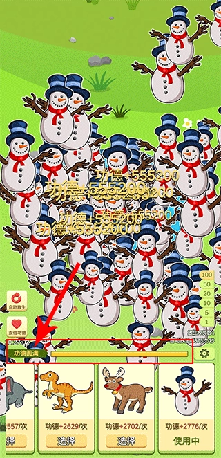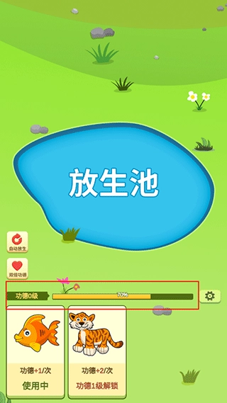 游戏界面下方的进度条代表着你的升级进度与功德等级,等级越高,可供你放生的动物种类也就越丰富。