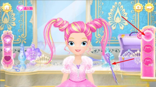 2. 抵达乔斯王子所在的国家后,首要之事便是打理发型,点击右侧的物品为她梳理头发。