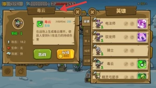 派出【毒云】英雄,借助其持续伤害来清理沿途聚集的怪物,以此让关卡能够持续更久。