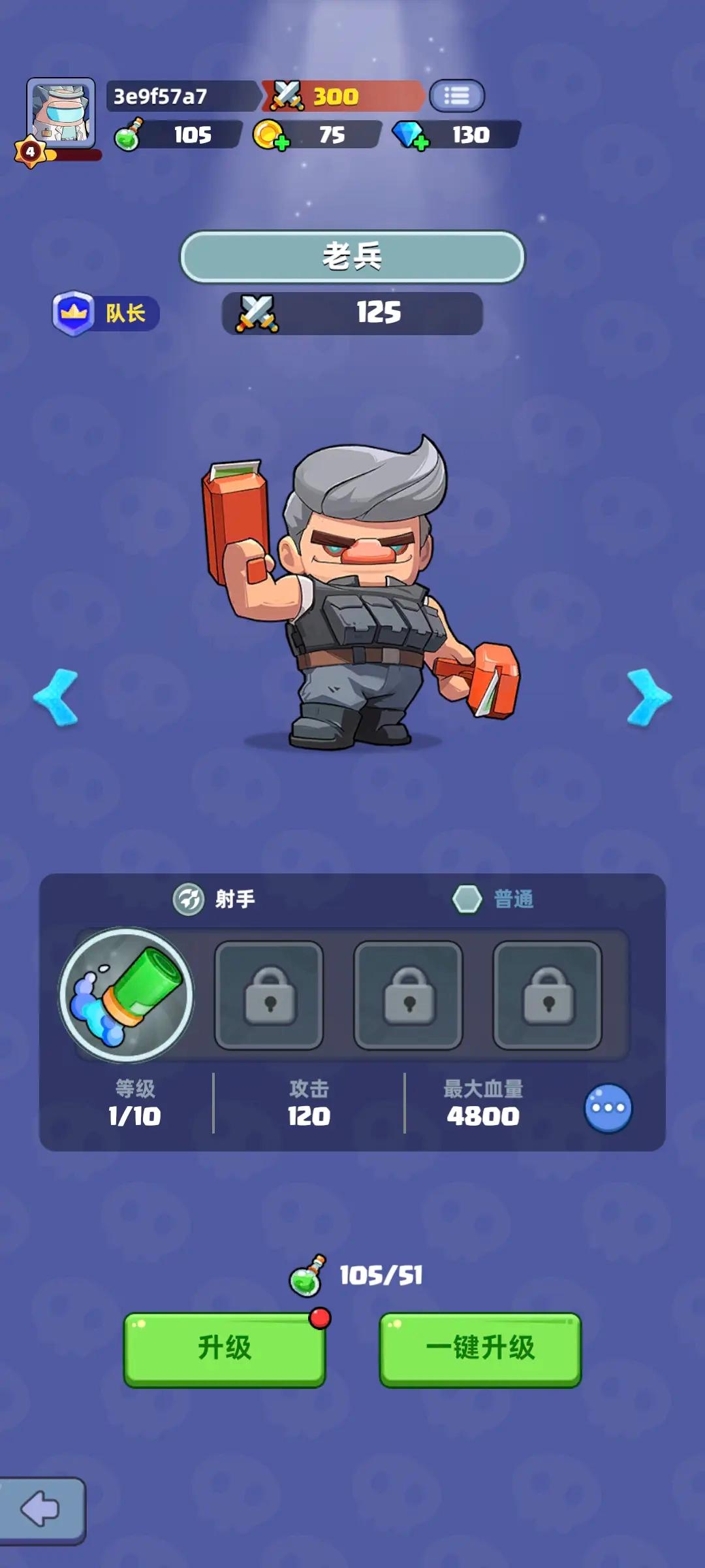 老兵的技能属于主动技能,效果是提升自身攻击速度以及士兵的攻击速度,推荐装备可参考图示。
