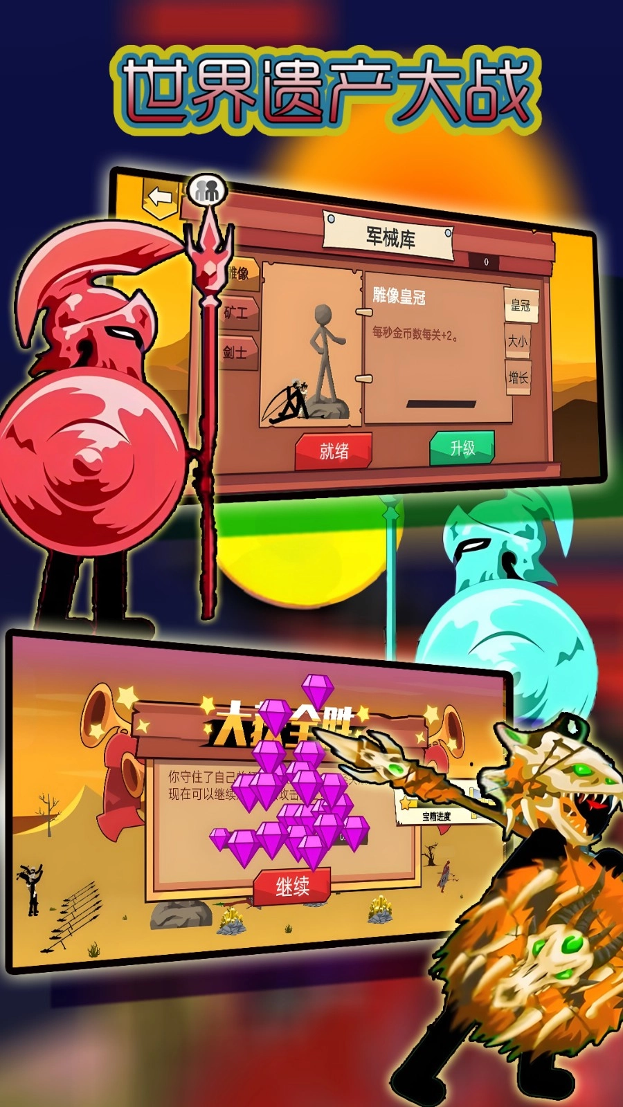 世界遗产大战是一款有趣的火柴人策略游戏,开启热血激情的战斗,需要合理部署自己的阵容,为士兵们搭配合适的盾牌与武器,勇敢迎战敌人,充分发挥你的战略眼光,成功击败对手获取战利品,从而不断提升自身整体的作战能力!