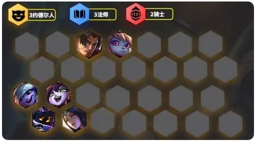 我们可以依据拿到的约德尔人来决定转型的时机,要是璐璐、小法的星级相对较高,就能够先选取狐狸、卡牌来替换掉枪手,慢慢在中期构建起3法+3约德尔人+2骑士的阵容。