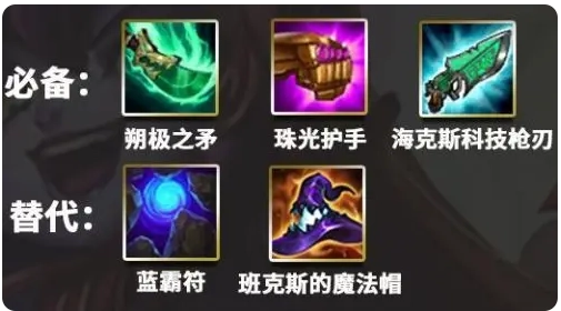 小法若要作为C位来培养,启动速度必须足够快才行。对于蓝量上限不高的小法而言,青龙刀(也能换成蓝buff)十分友好,能帮他快速提升施法速度。科技枪可以增强小法的续航能力,他的爆发伤害会按比例转化为治疗量,基本上每次技能命中敌人,都能让自身生命值瞬间回满。珠光护手则能强化小法技能的单体爆发伤害,在前期法强还没叠起来、没达到三星的时候,为他提供秒人的基础条件。