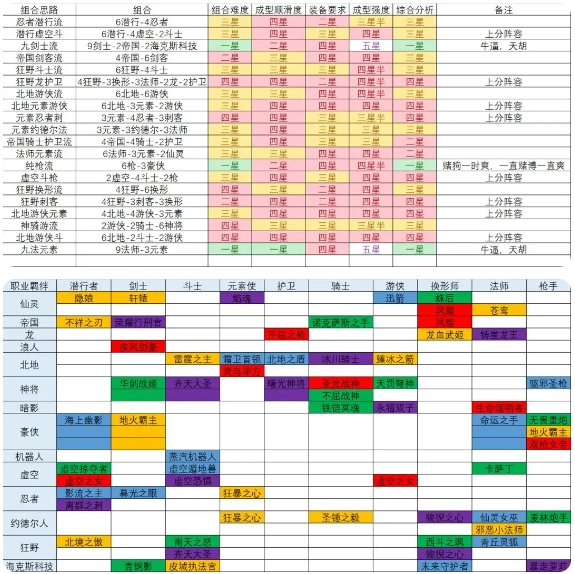 二、潜行虚空斗阵容,搭配为6潜行、4虚空、2斗士(这套阵容相当出色且强势,不仅在前期有不错的过渡能力,后期也具备强大的作战实力,很适合新手用来熟悉和练习游戏)