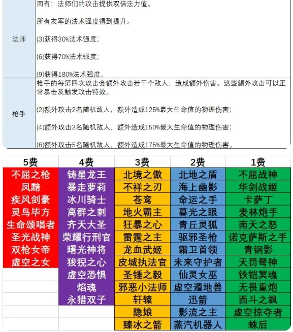 3法师:固有效果:法师们的攻击可为所有友军提供双倍法力值,同时提升所有友军的法术强度。