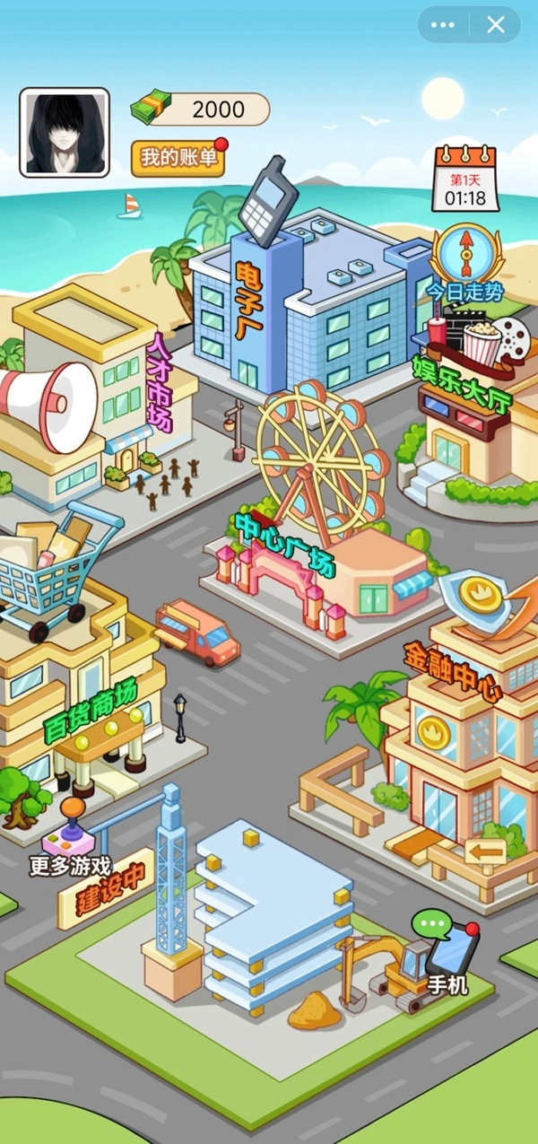 2、去地图上的其他地方,通过玩小游戏赚到更多钱