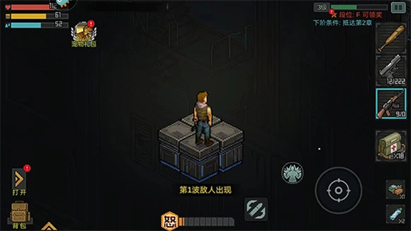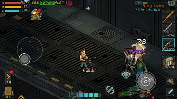 7、点击左下角的【背包】按钮,就能查看并使用当前拥有的药品、装备、子弹等物品。