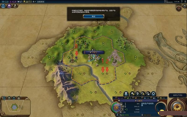 1、城市建成后,你将通过购买、文化扩张与征服整合等方式控制一片区域,该区域的范围会随之扩大。