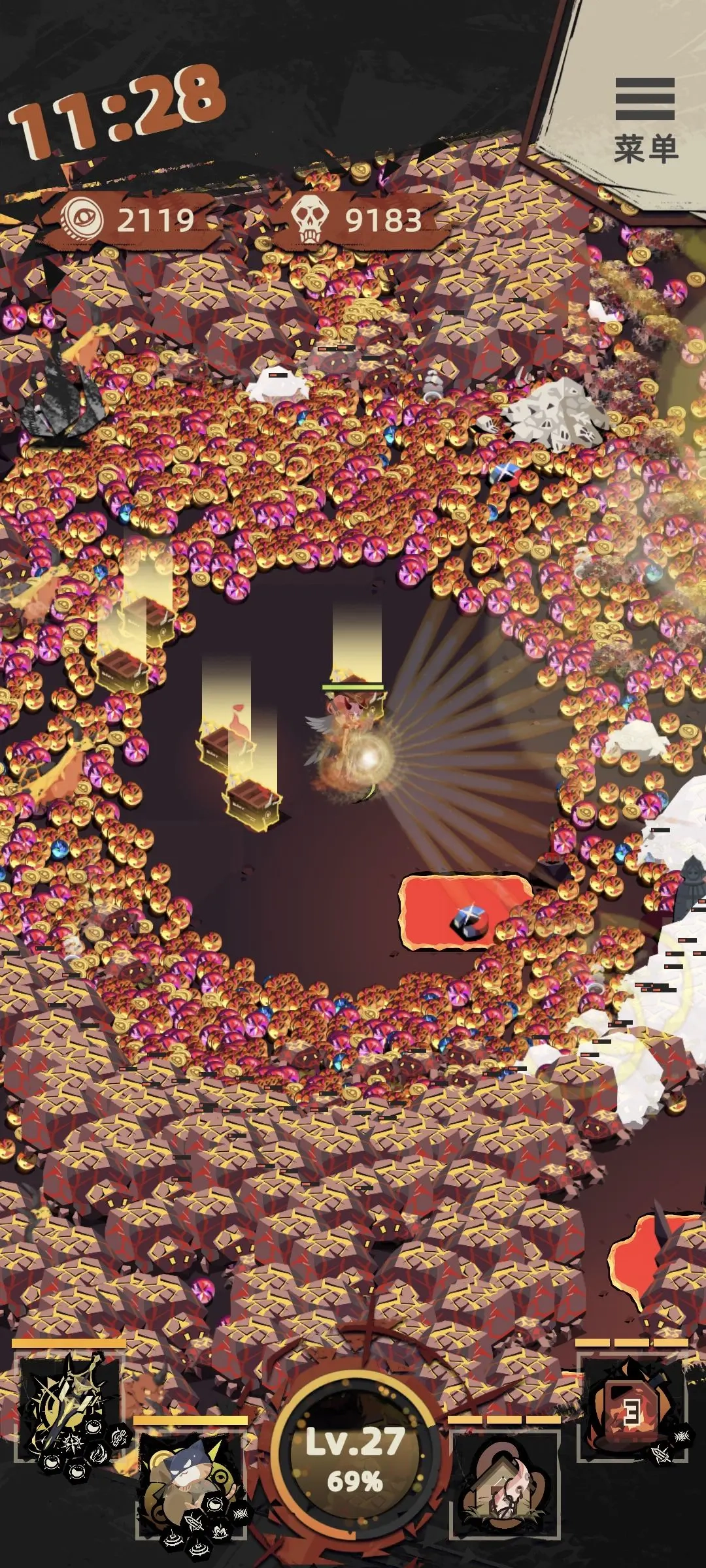 二、刷金原理: 利用赎罪券定住怪物,保证生存的同时增加金币加成,金猫主力输出炸出金币。
