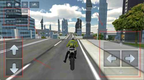 2、左侧负责控制车辆油门,右侧可实现车辆转向以及抬头、低头操作,左上角显示的是玩家的个人信息。
