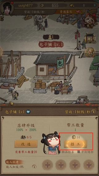 包子铺建成后,我们需要进行招工操作以运营店铺。