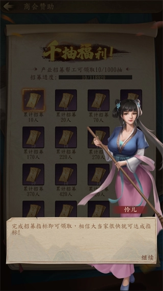 凭借独到的商业眼光,玩家能招揽各类人才:精于算计的文士、善于迎客的伙计、深谙管理的掌柜……借助他们拓展商路;同时,游戏的“商机系统”会适时推送赚钱机遇,考验玩家的决策智慧。