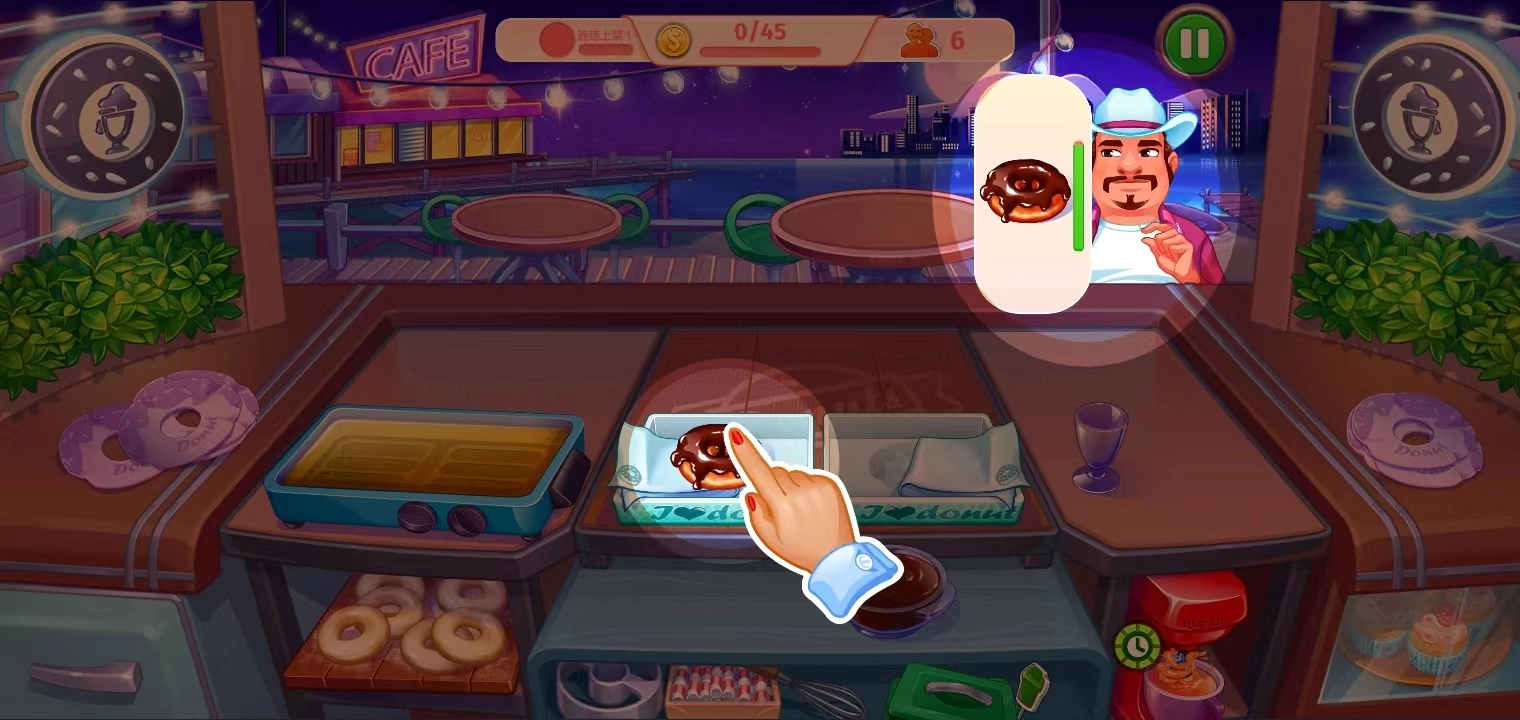 6、然后再点击做好的甜甜圈就可以给顾客了;