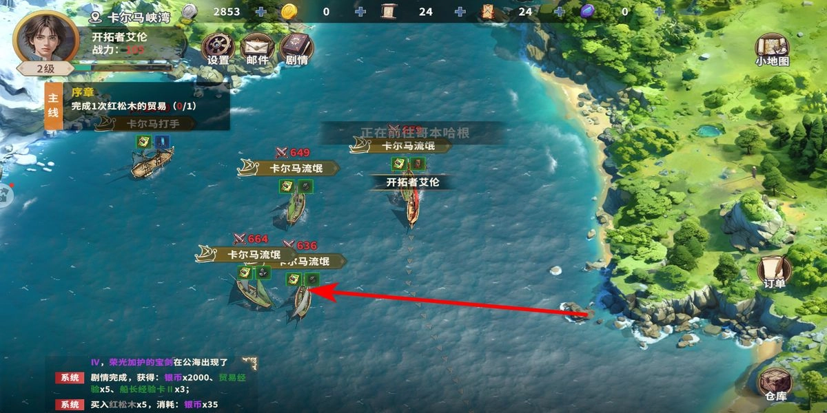 2、顺利进入游戏地图后,需严格遵循主线任务的指引,前往卡尔马峡湾的指定区域。在该区域内找到标注明确的卡尔马流氓船只并点击,以此触发战斗或交互环节,从而推动序章任务的进度,解锁后续的新内容。