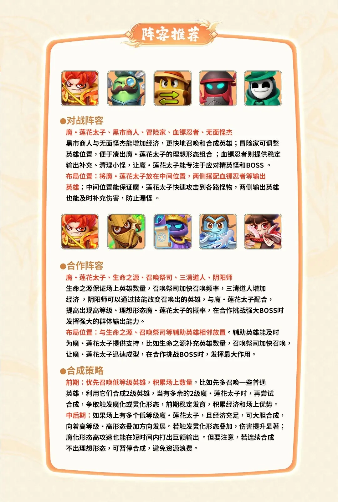 这里整理了魔·莲花太子对战、合作阵容全攻略!