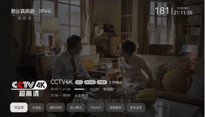 超高清源:包含4K/8K高清节目源,画面细腻