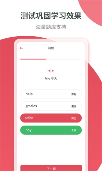 《西班牙语学习》配备了多样的情境对话训练,使用者能够在仿真的对话环境里锻炼口语与听力,提升实际沟通水平。无论是日常交谈,或是旅行购物,都可以在该平台找到对应的训练素材。