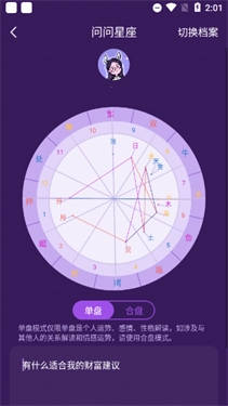 3、点击整体趋势即可进入单盘模式,单盘模式仅针对个人运势、感情及性格进行解读;若需解读与他人的关系或情感运势,请切换至合盘模式。