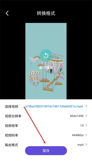 4、在确认好视频的分辨率、帧率等相关信息后,点击界面底部的【保存】按钮,就能开始视频格式的转换流程了。