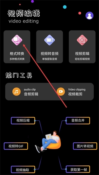 1、进入这个界面后,找到具备多种格式转换支持的【格式转换】功能,点击该选项就能进入选择视频的操作环节。