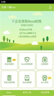 百度root中为用户们提供的root工具都是绝对安全的,进行获取root是不会对设备造成任何危害的。root权限获取后,就可以帮助用户更为全面的去控制设备,可以有效的提升手机的性能。root之后可以轻松对安卓手机系统进行底层的优化修改,卸载手机中的自带应用。