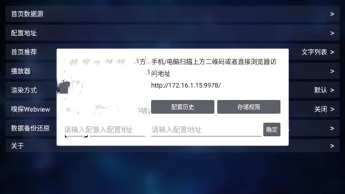2、TVBox支持两种导入视频源的方式,一种是网络链接,一种是本地文件,前者简单,只要我们把订阅链接粘贴到弹窗的配置栏内即可: