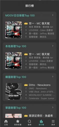 moov音乐集合了十分丰富的音乐资源,可以很方便的进行播放和,用户能自己制作歌单,把自己喜欢的音乐添加到一起,打造属于自己的音乐世界,音乐品质都很高。这里所有的音乐资源全都能免费畅听,没有会员的限制,让歌迷随时畅听心仪歌曲。