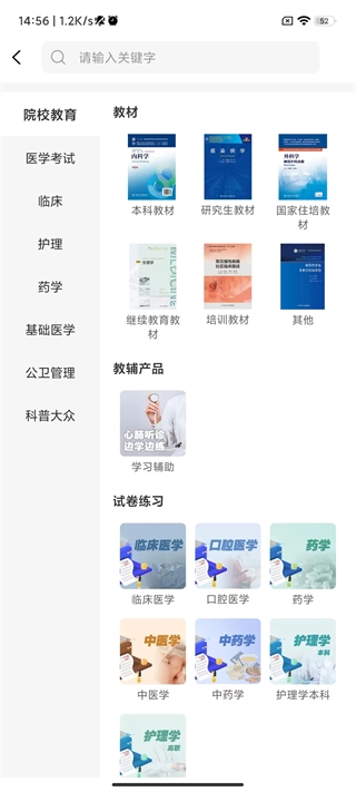 打开软件后看到的初始页面,像图示那样,上面汇集了大量和医学考试相关的各类资料。