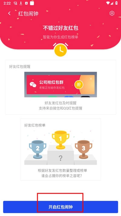点击开启红包闹钟,接着按照提示完成设置,之后就能顺利开启红包提醒,不会错过任何红包了。