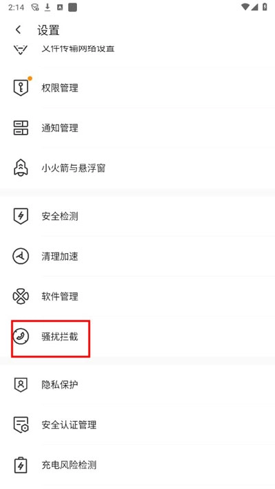 你可以这样操作:先找到骚扰拦截功能,接着点击界面右上角的设置图标,最后开启夜间防打扰模式并完成相关设置就可以了。