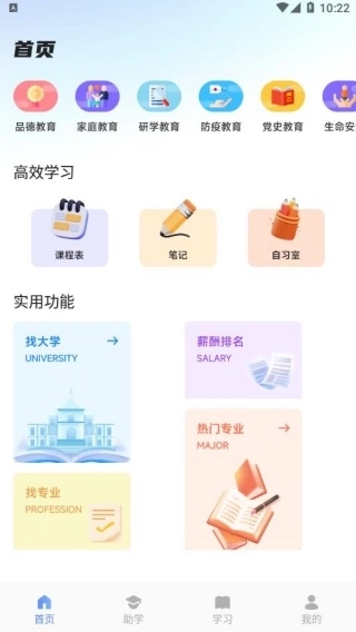 3、把课程学习、考试检测、大学与专业查询、薪资排名参考等各类功能整合在一起,操作使用起来十分流畅。