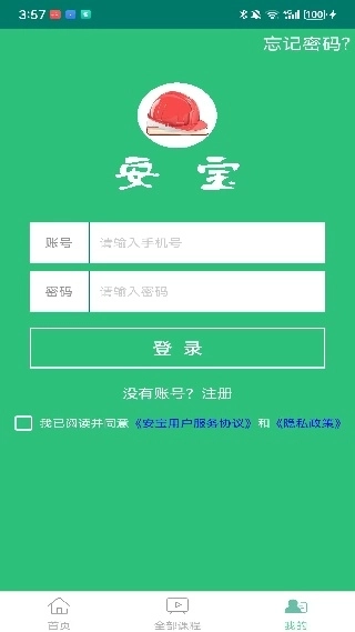 1.在安宝应用的登录界面,输入手机号码与密码以完成登录操作