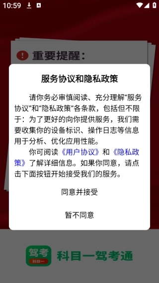 1、这款软件的服务协议与隐私条款需仔细阅读后,再点击同意;