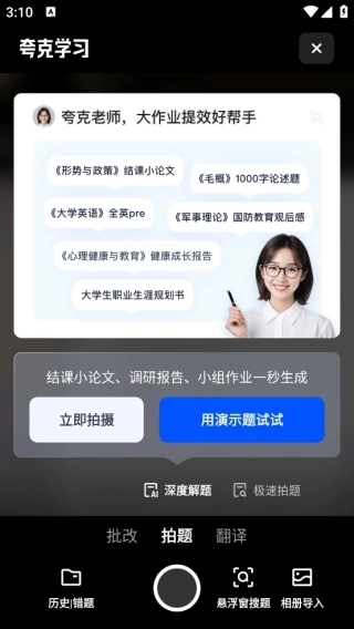3、可以依据你拍摄的内容,自动生成待完成的课题,通过全自动化的方式解决难题,能帮人省去不少心思,另外还具备常见的翻译功能等;