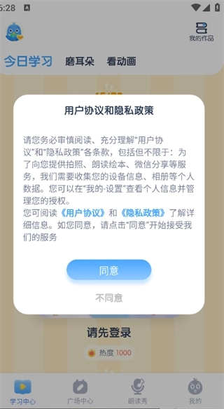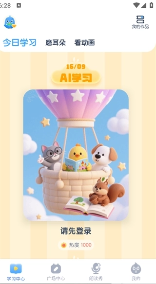 2.在首页就能看到今日学习、磨耳朵、看动画等功能。