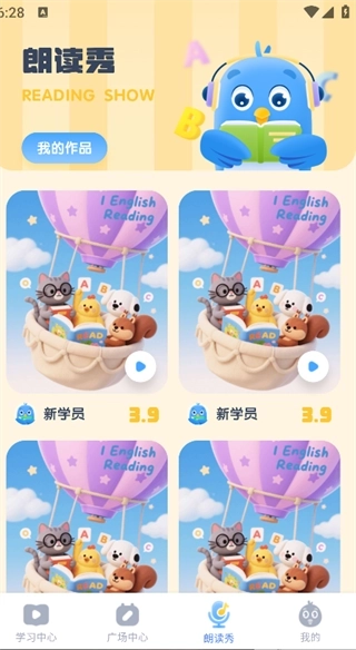 4.点击页面下方的“朗读秀”,就能看到不同学员的朗读作品。