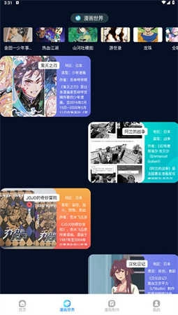 3、点击“漫画世界”栏目,浏览经典漫画的详细介绍和用户评分,进一步了解作品背景