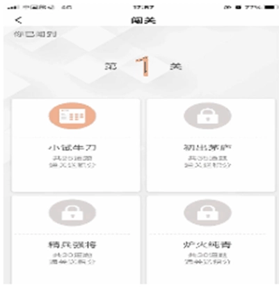 闯关系统共设有五关,依次为:小试牛刀、初出茅庐、精兵强将、炉火纯青、登峰造极。成功通过这五关的人员,将被认定为岗位晋升业务考核合格者;只有业务考核合格的人员,才能够进入下一项目的考核环节。