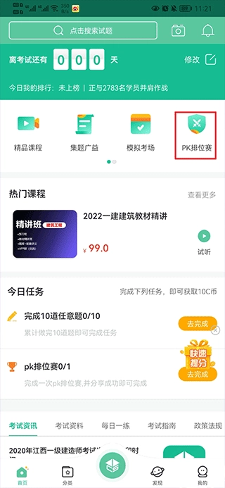 一、在首页中点击pk排位赛