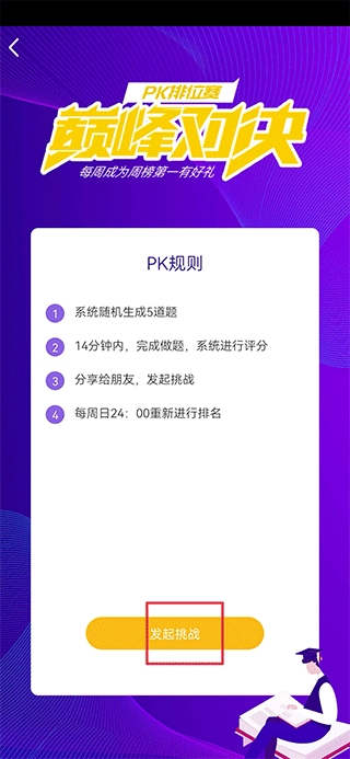 二、了解pk规则后,点击发起挑战