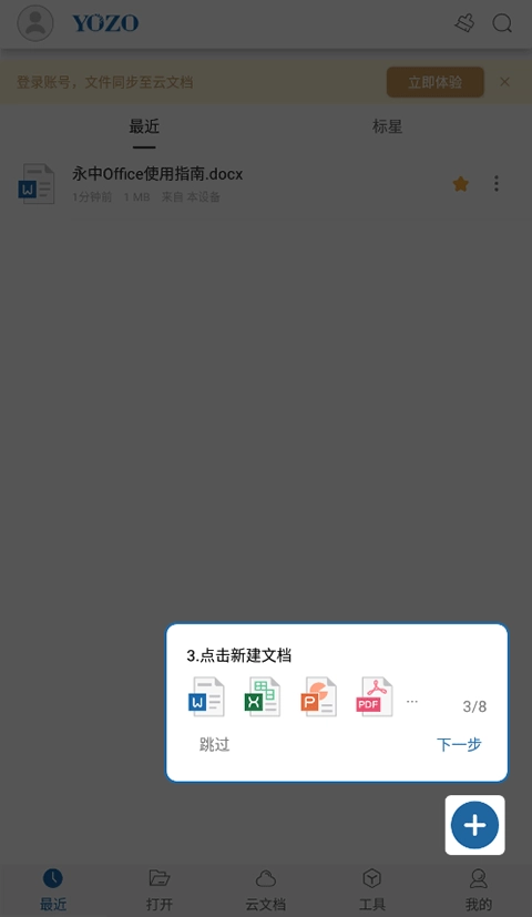 6、打开永中云同步,文档更安全。