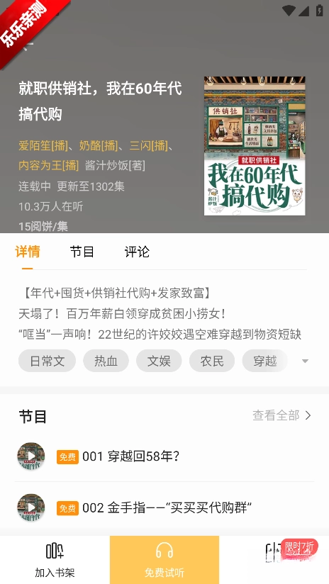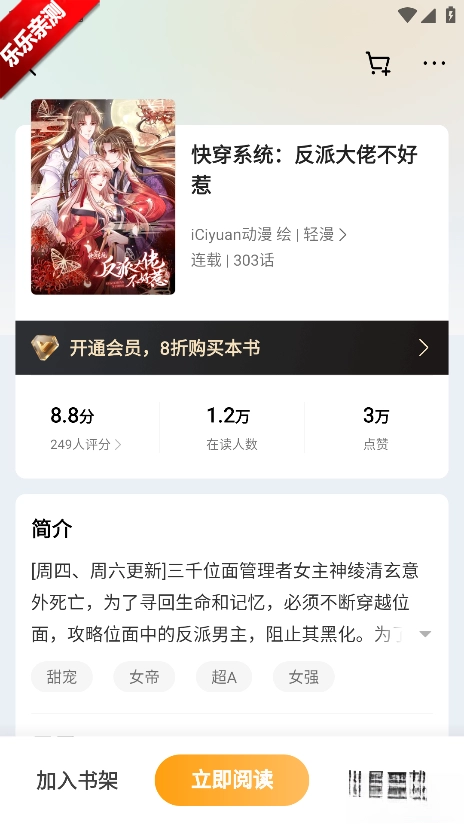 3、在小说详情页面里,找到并点击“加入书架”或者功能相似的按钮