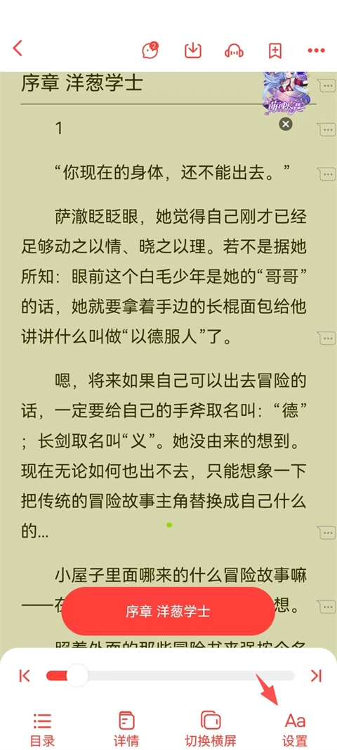 2、轻点阅读页唤醒功能菜单,点击右下角设置;