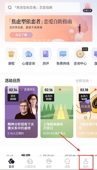 1、登录简单心理,在首页下方点击【我的】,进入个人中心页面