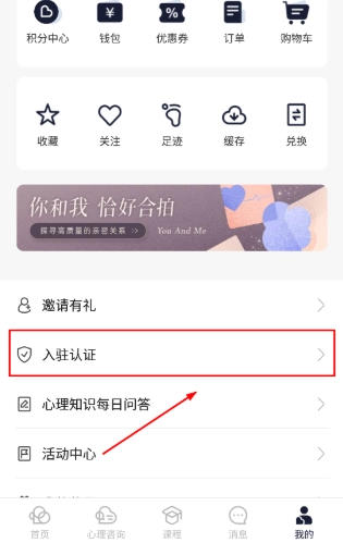 2、在个人中心页面内,在下方查找到【入驻认证】