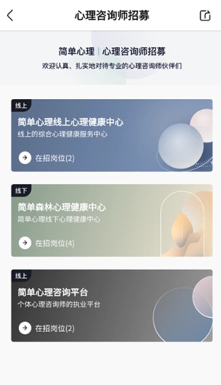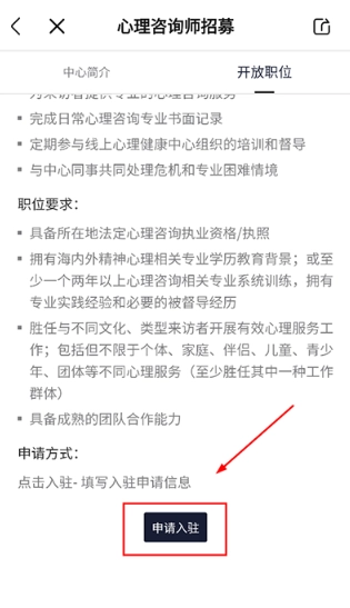 3、在【心理咨询师招募】页面,用户可根据自身的情况来选择入驻岗位
